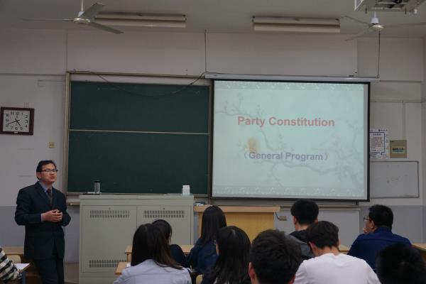 2016年4月12日16点30分,南京邮电大学海外教育学院党委书记方宗祥教授于教一109举行了题为“party constitution”(党章)的一场英文讲座,和新一批党校学员们就中国共产党许多重要的政策进行了说明和讲解。