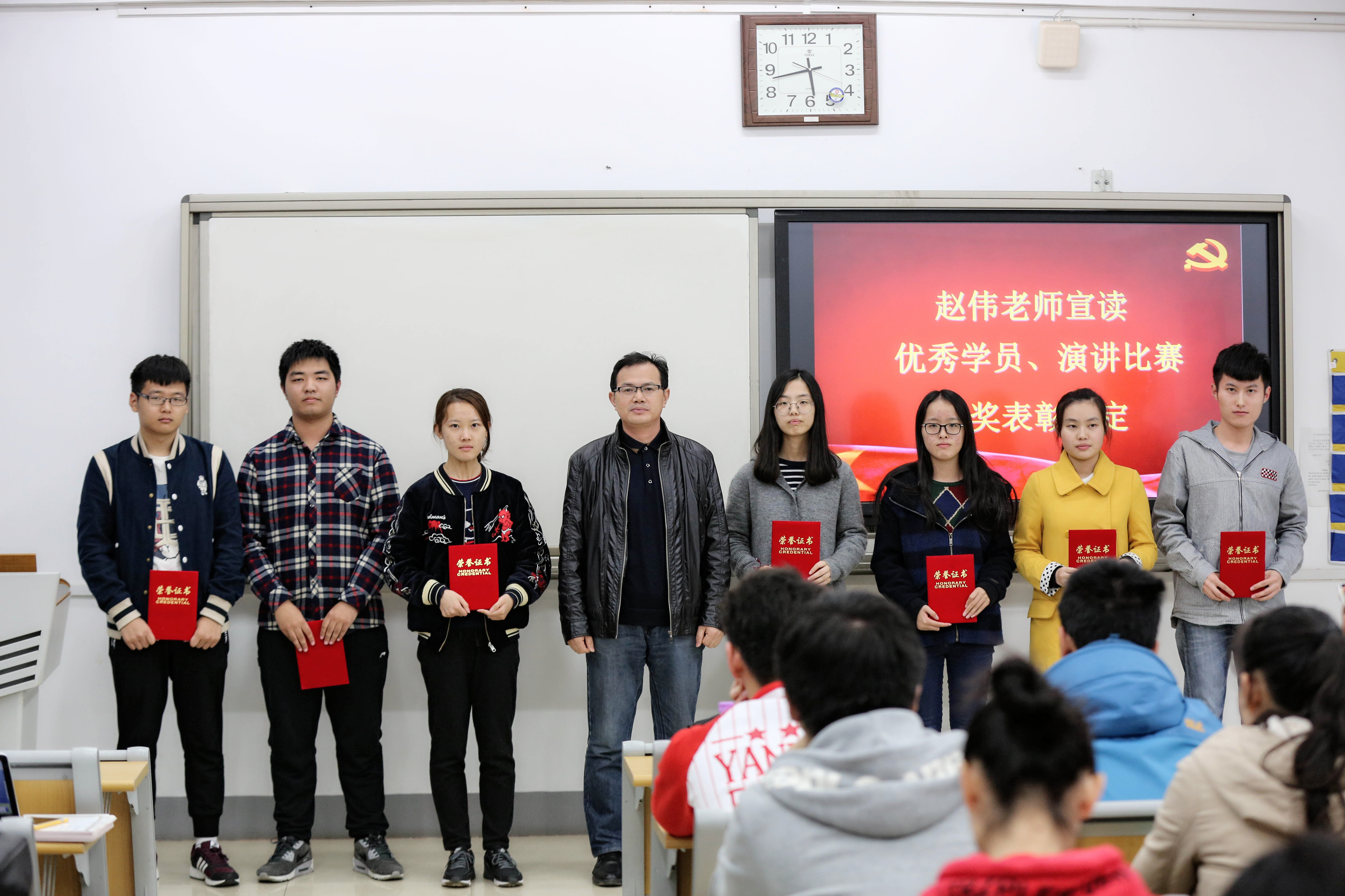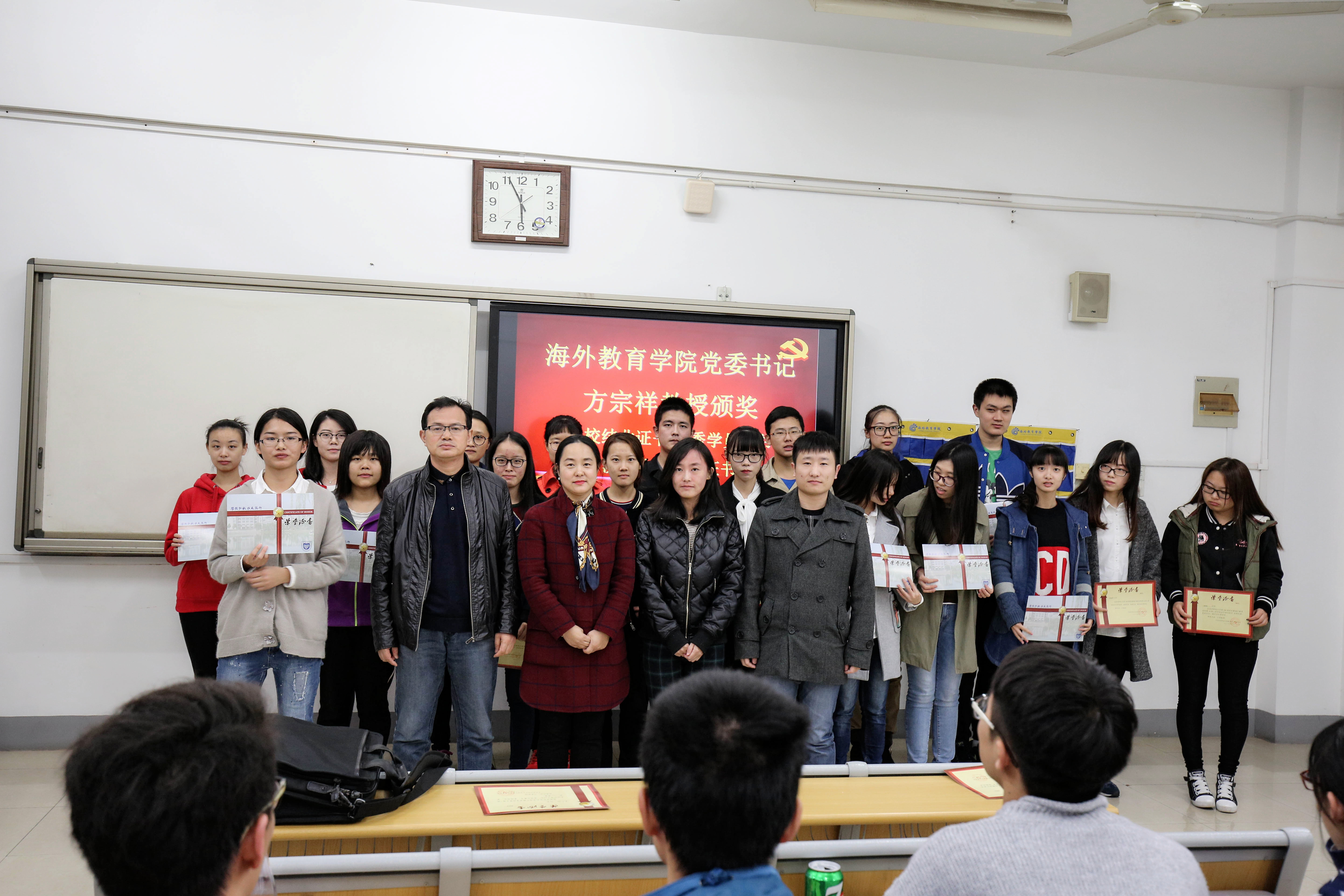 2016年10月31日17:30,南京邮电大学第308期暨海外教育学院第16期党校培训班结业典礼在教一402完美落幕,海外教育学院党委书记方宗祥教授、分团委书记赵伟老师、学院全体辅导员和本期82名学员出席了本次结业典礼,典礼由周健老师主持。