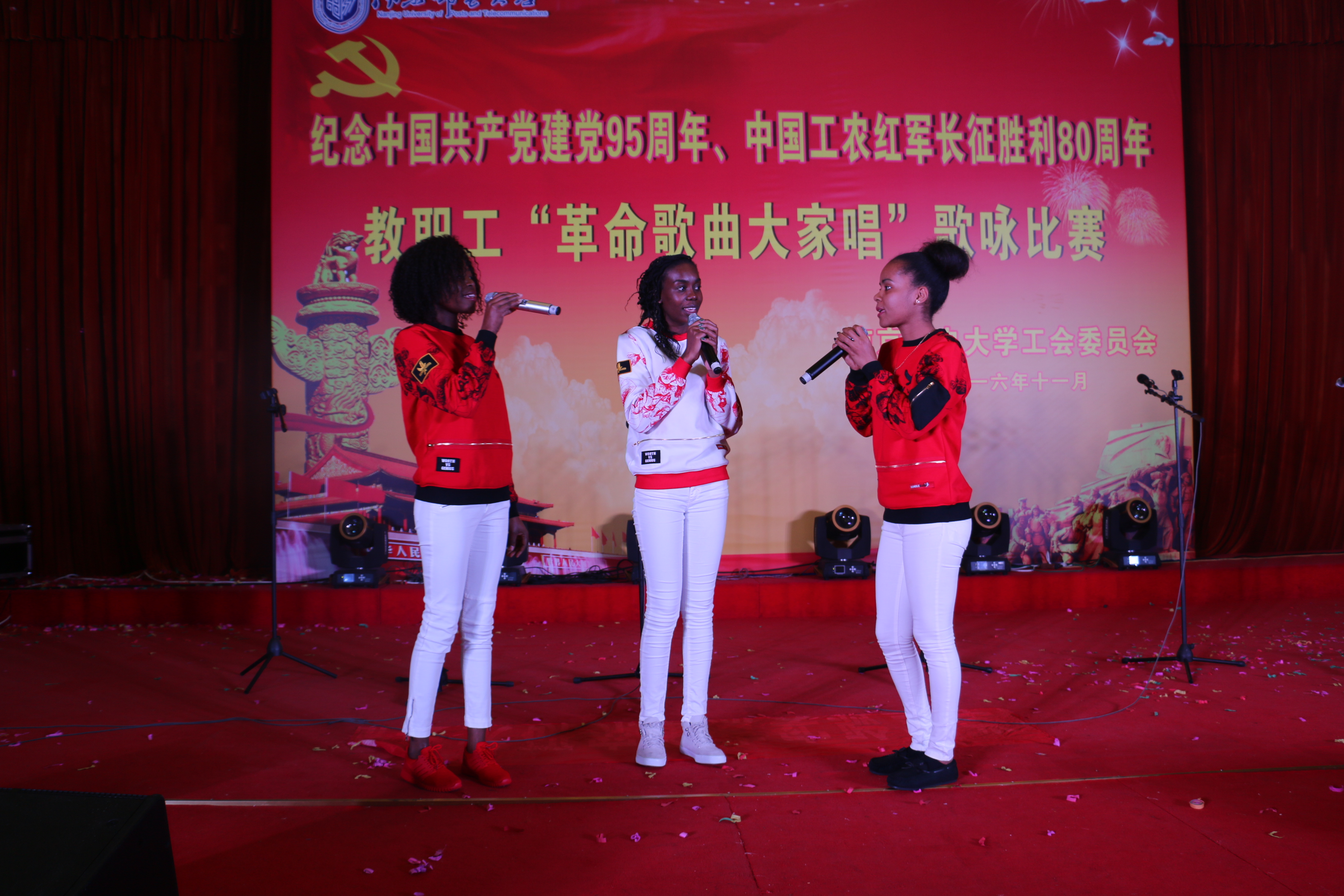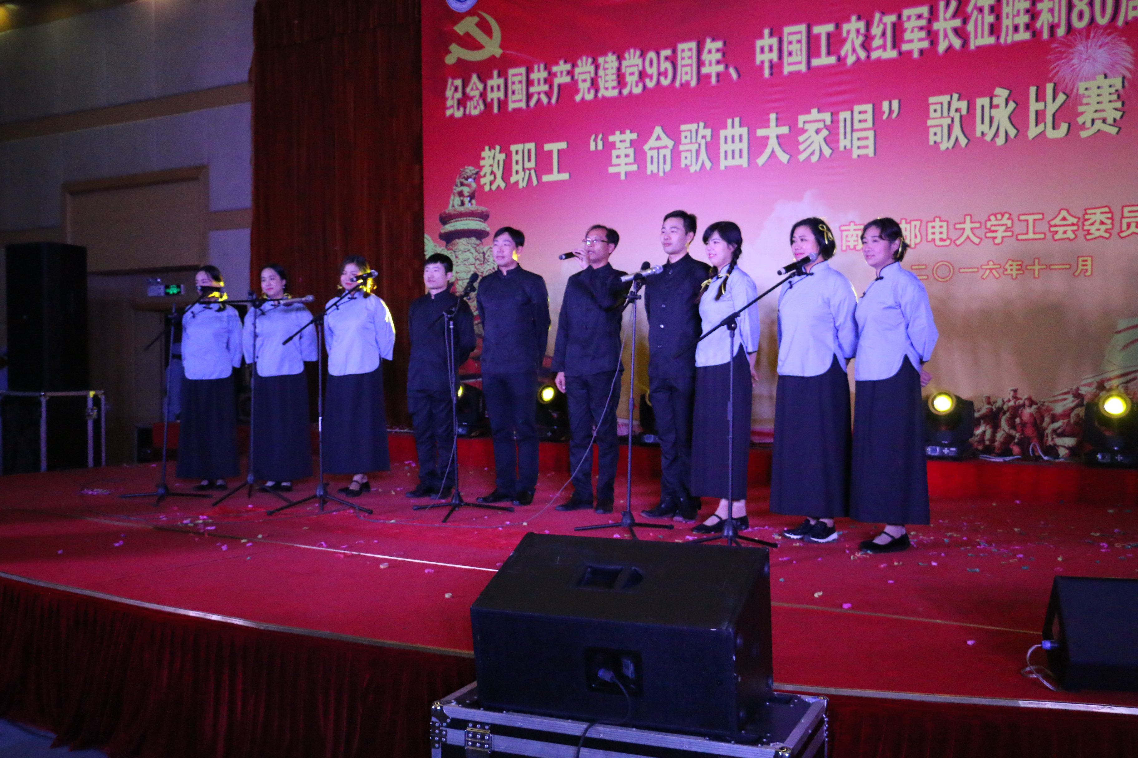 2016年11月9日上午,我院教职工代表参加了校工会举办的“庆祝中国共产党建党95周年、中国工农红军长征胜利80周年教职工‘革命歌曲大家唱’歌咏比赛”,以朱国平副书记为代表的海院10名教职工参加了合唱表演和独唱比赛。