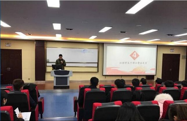 之后,由上届优秀学生干部王赞丞发表感想,强调良好的学风对于个人,学校生活的必要性和重要性。提醒同学们珍惜大学生活,做到自立,自强,自信,以学生骨干为榜样,互相帮助,创造属于自己的大学生活。