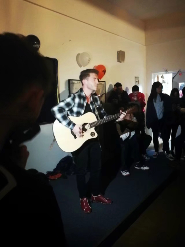 活动的最后,去年参加过邮梦晚会的留学生抱着吉他,为我们深情弹唱了一首俄罗斯歌曲。曲罢,在场的留学生们也开始一个接一个地上台展示他们的歌喉,歌声动人,情意亦满。