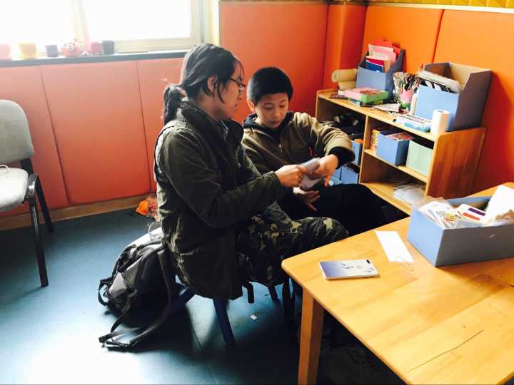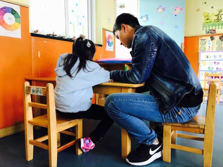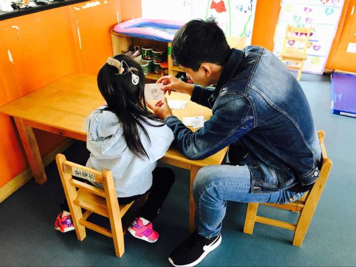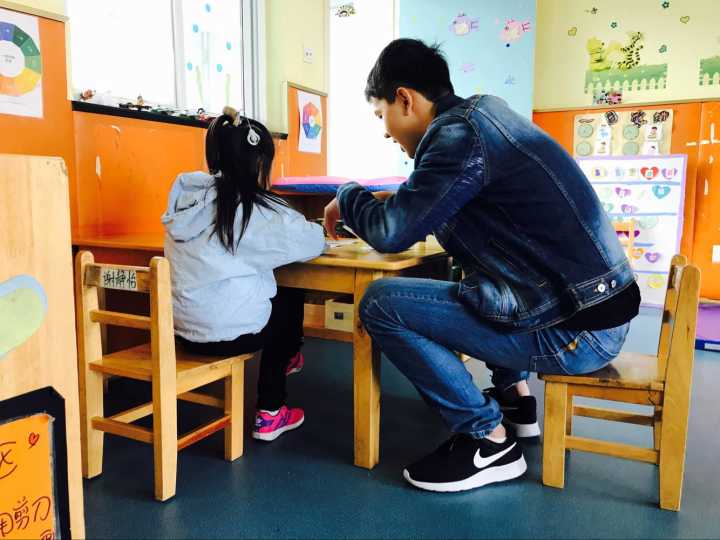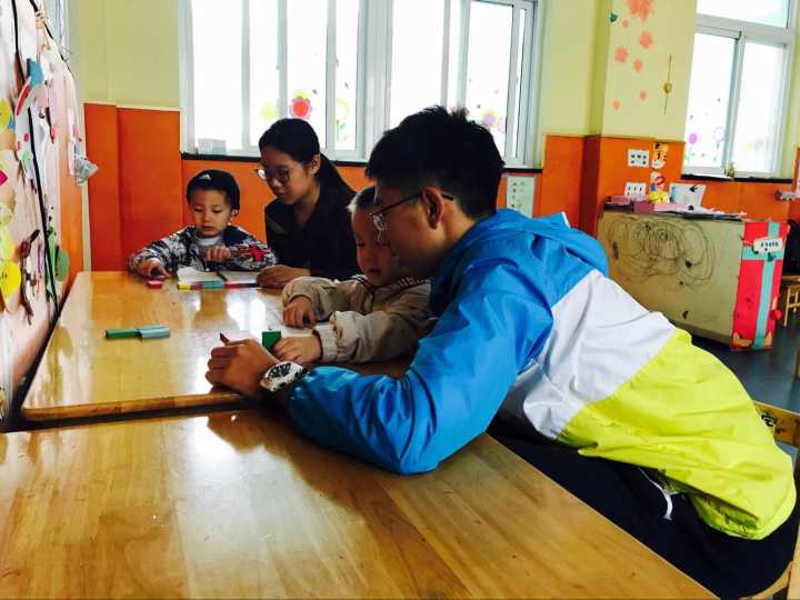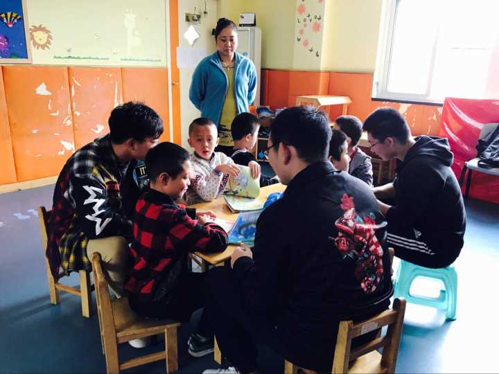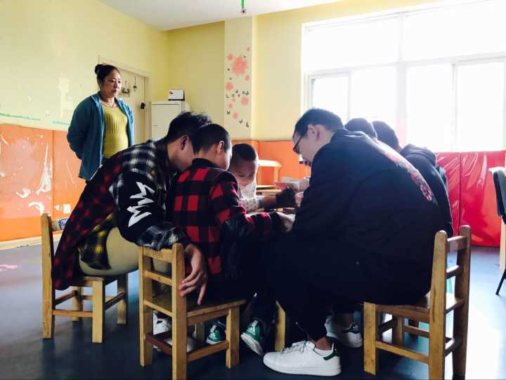 10月29日早上七点,同学们准时在教一集合,由海源青志协的主席和部长们带队,乘坐地铁以及公交,于上午九点抵达位于栖霞区康复托养中心的婷婷幼儿园。幼儿园位于一条略显破旧的街道上,附近的老人们坐在自家院子门口看着过往的行人来来往往。在街道的尽头,便是婷婷幼儿园。幼儿园的老师和往常一样热情地接待了同学们。没有过多的寒暄和客套,,老师指派一部分同学前去搬些器材,剩下的同学便进入教室陪伴小朋友们。教室里有许多被单独划分的隔间,用来方便单独辅导小朋友。同学们教孩子们拼图、写字、画画、写诗。在这几个小时里,孩子或许因为特殊的疾病听不懂同学们说的话,也无法和同学们进行自如的交流,但他们还是会想和哥哥姐姐们一起玩耍,一起做游戏,听哥哥姐姐讲故事。