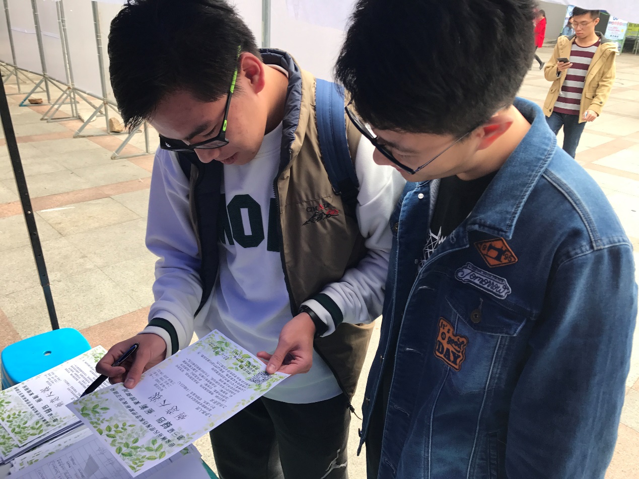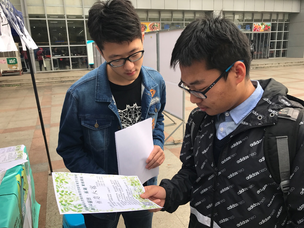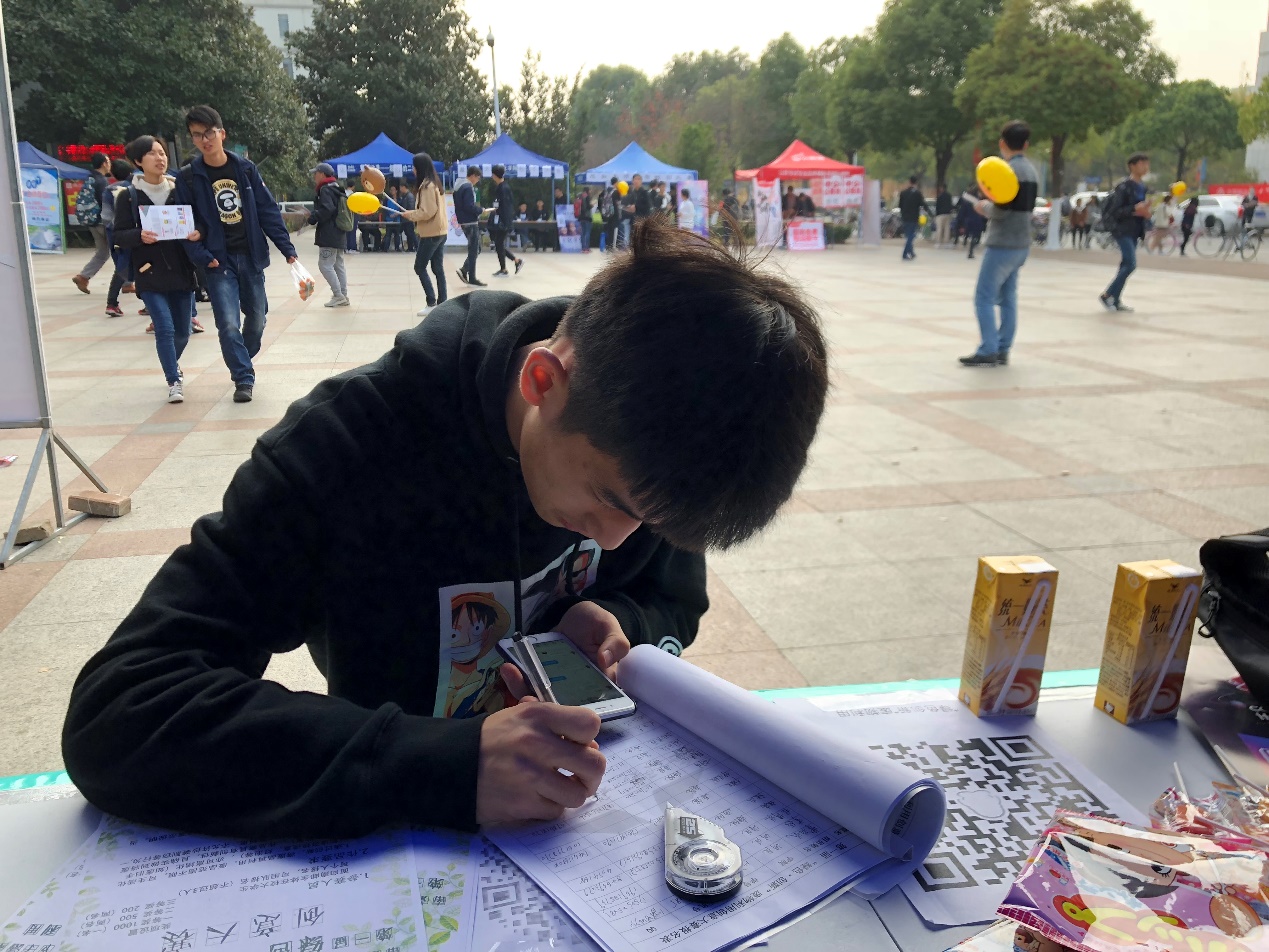 本次活动的报名分为线上和线下两种方式。线上报名的方式极大方便了同学,而线下报名方式则切实提高了海院科技节活动在全校的知名度。值得一提的是,本次活动宣传的创新化、多样化和完善化,推动了本次线下报名工作的顺利进行。回顾这三天的线下报名工作,尽管秋风萧瑟,而海院科协在南二外场的人气却有增无减。