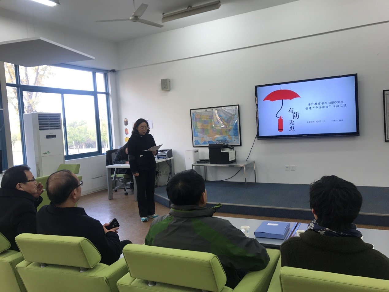 徐磊副书记从组织架构、教育活动、安全检查、规章制度、应急演练和亮点创新等六个维度全面而系统地汇报了创建情况。海外教育学院对于推进学院安全稳定工作高度重视,专门成立了学院安全稳定领导小组,下设综合治理工作领导小组、治安保卫委员会以及义务消防队,全面指导学院的安全稳定工作和创建工作。各年级、各班团支部也成立了相应的安全稳定互动小组,构成多方配合、纵横联动的平安工作格局。H150008班作为数字媒体技术专业学生,充分利用专业优势,从2015年入校开始每年拍摄一部安全主题系列微电影,寄托着同学们对于平安班级、平安高校、平安社会的无限美好向往。会议进行的同时,学生工作处处长张敏和校团委书记李晓华前往学生宿舍进行安全检查。