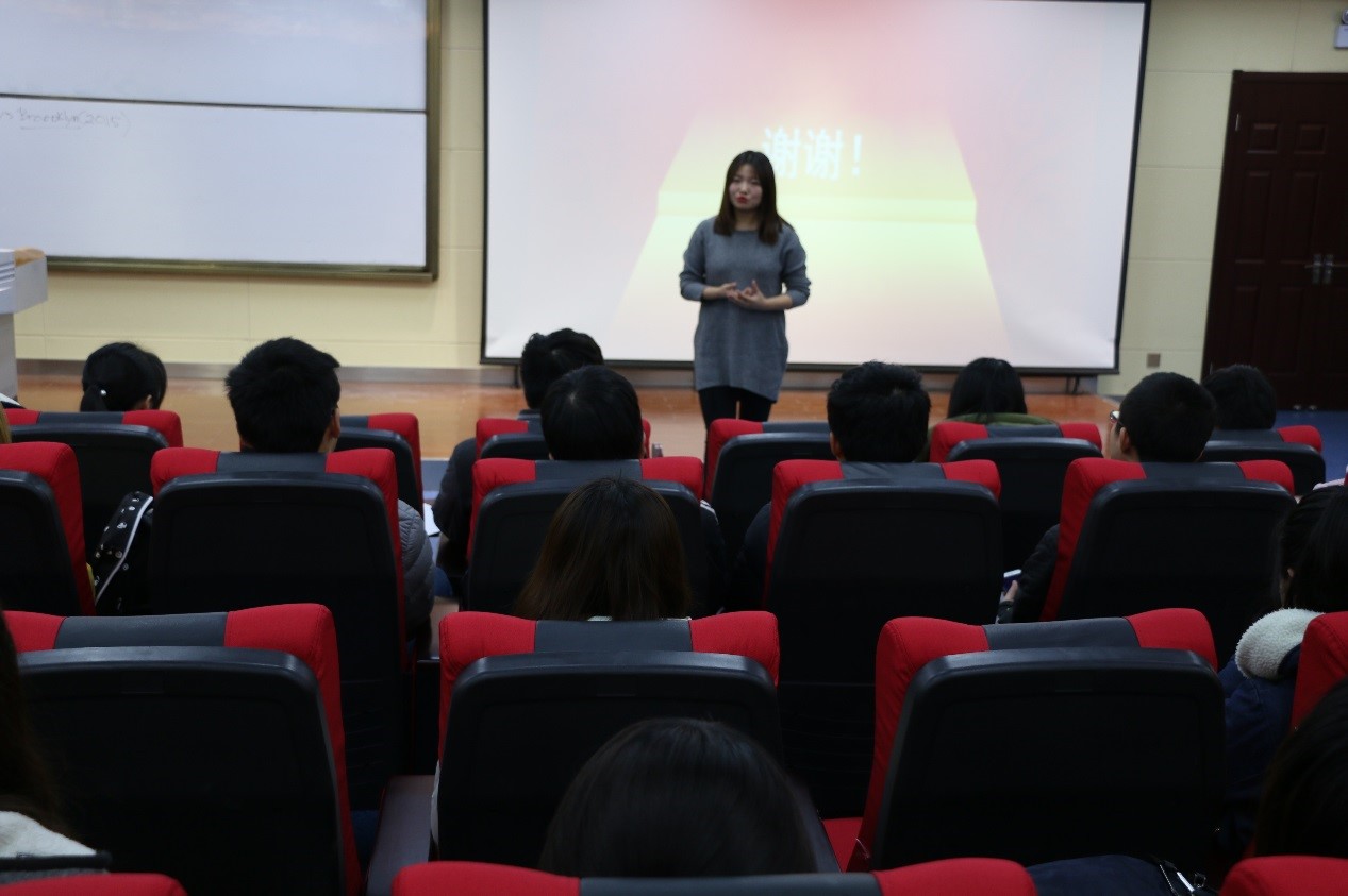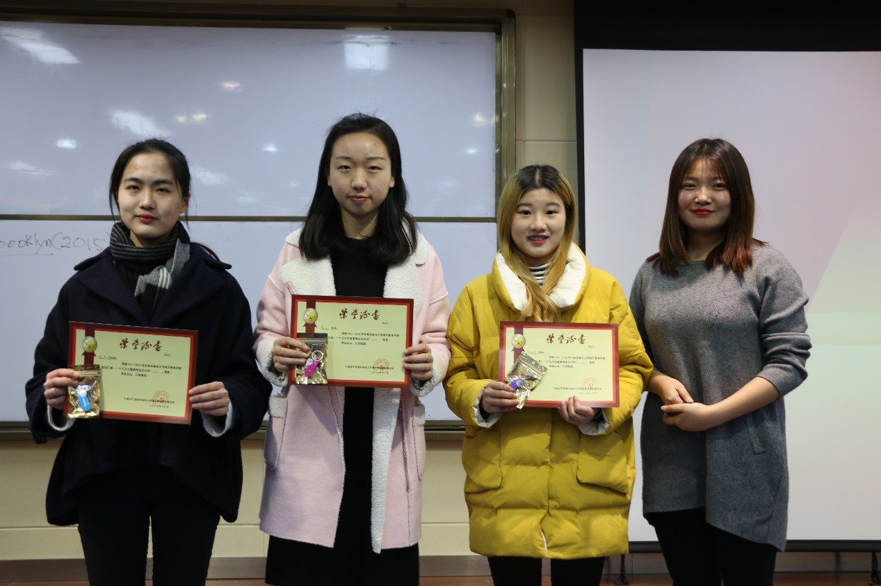 首先,颁奖典礼的第一项,全体同学起立,奏唱国歌。在国歌的余韵中,由宋贞臻老师对在此次征文比赛中获奖的同学进行嘉奖,为他们颁发获奖证书以及奖品,并勉励他们不忘初心,继续前行。最后,由获奖代表16级通信工程专业施苏峰同学发表获奖感言,她说:“我们还站在昏暗中,怀着柔和的梦想,渴望走进那光明中,自己也化为光。所以,请让我么走进这青春的故事里,昂首阔步,意气风发。”