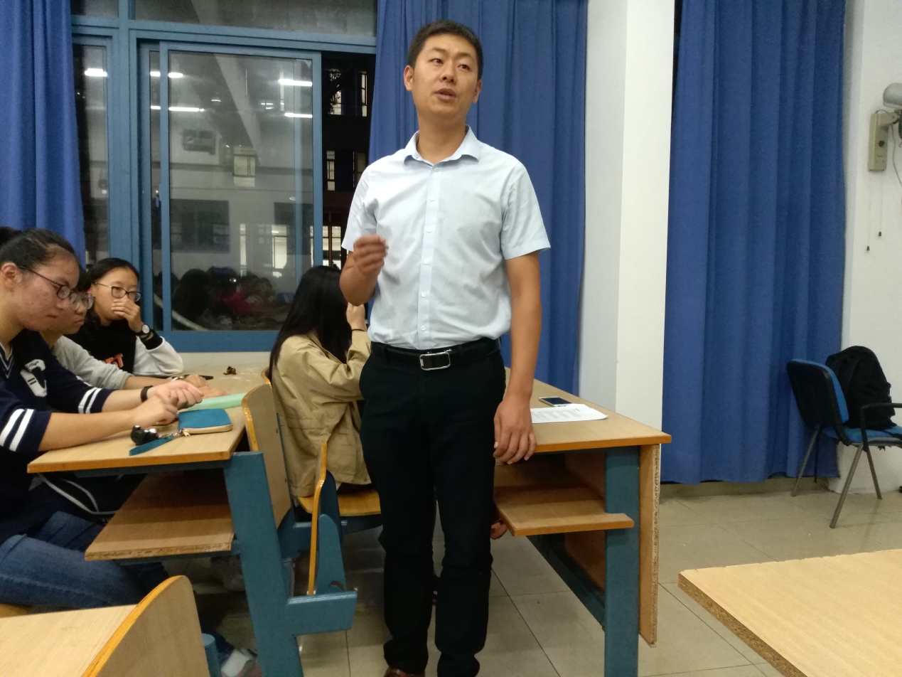 在钱辅导员的总结与班委宣誓仪式之后,班主任针对相应各班工作中仍存在的不足,提出了相应的建设性意见,尤其在开展班集体活动方案方面提出了具体指导意见,并对同学们寄予希望。班主任们以自身为例,对学生的大学生活中社团活动、学习生涯都进行了分析和给予了建议,分享学习经验,为学生答疑解惑,帮助他们树立学习信心,在班上形成你追我赶的良好学习风气。更有老师以英文发言来显示海外教育学院的特色教育。