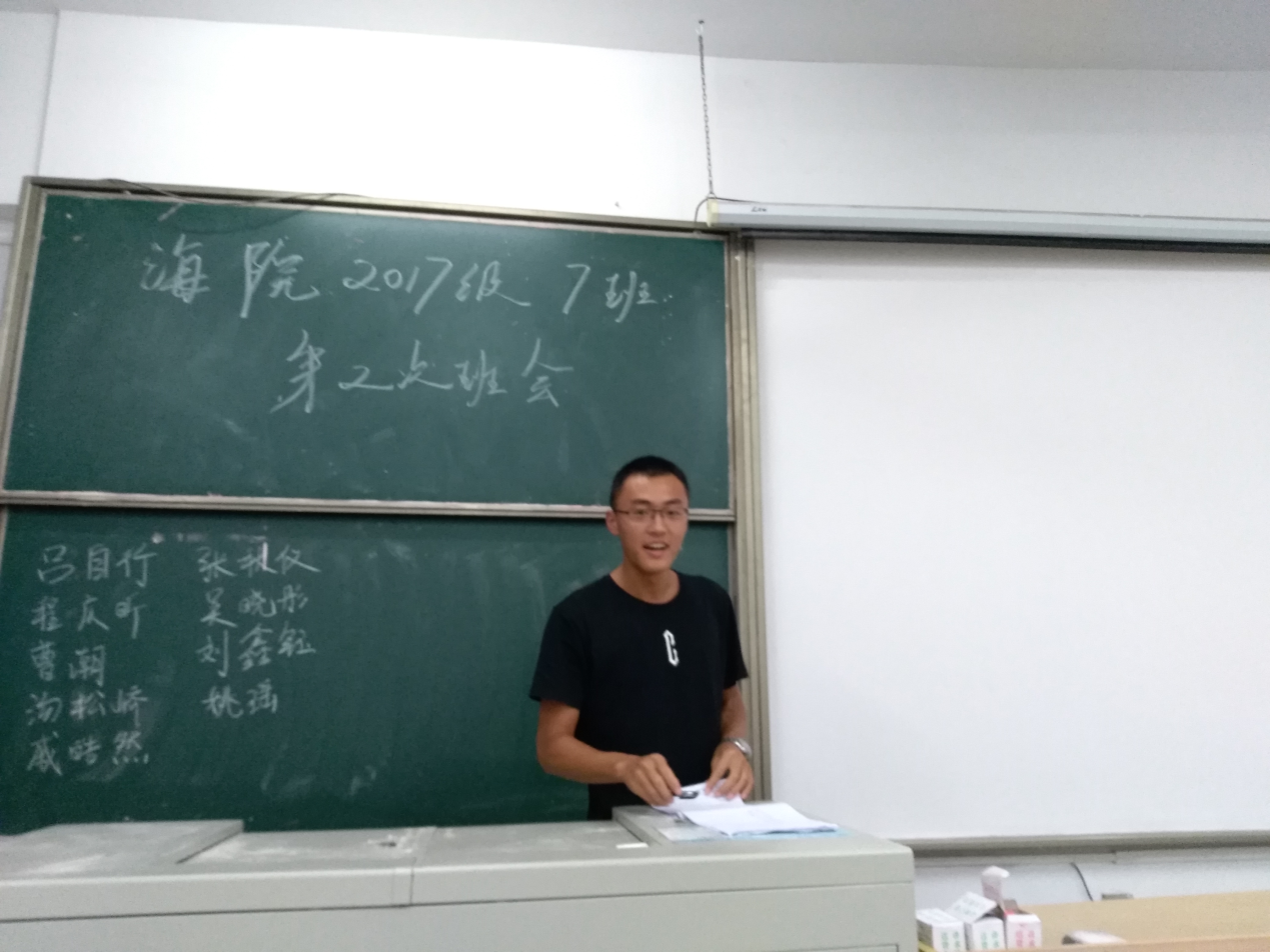 本次各班会议主要分为四个阶段。首先,由辅导员钱龙老师介绍班会流程,并对班委提出表扬和建议。接下来,各班委轮流上台发言向同学们全面而不失风趣的介绍自己,并承诺对今后的班集体工作认真尽职,同时希望与同学们携手并进把班级体建设为青春活力与拼搏奋进共存的先进集体。接着各班委在活跃的氛围中像老师同学们展现了自己的才艺和特长。同学们也积极响应班委号召,提出问题、各抒己见,用饱满的活力与激情展现大一新生的朝气蓬勃。