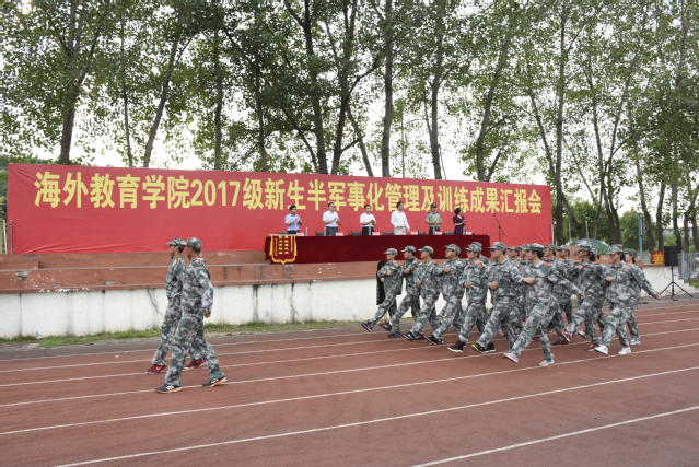 因课程安排的特殊性和军训工作的必要性,海外教育学院首次实施半军事化管理和训练,此举对于提高学生的思想政治觉悟,激发爱国热情,培养艰苦奋斗、吃苦耐劳的精神,增强团队合作意识和组织纪律性,养成良好的学风和作风都具有重要意义。