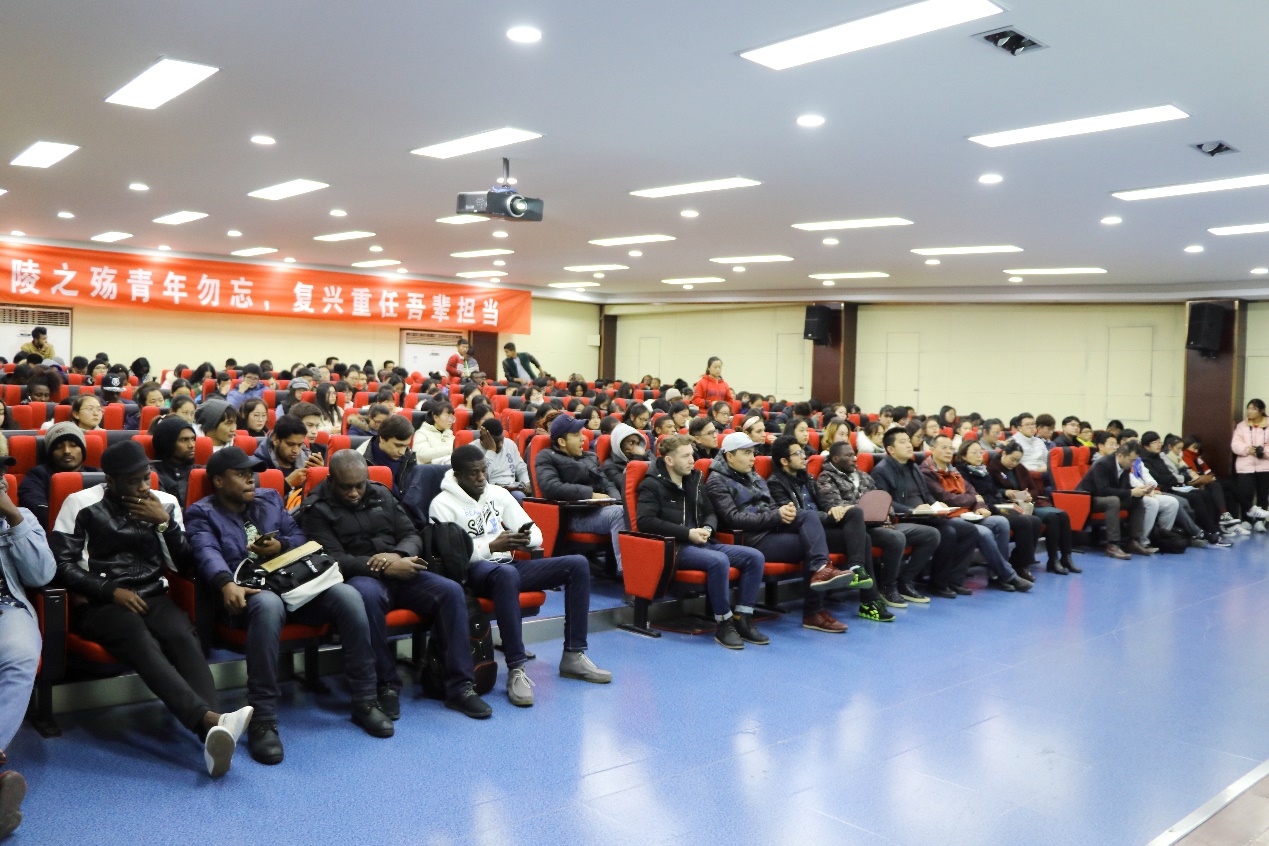 在第四个南京大屠杀死难者国家公祭日前夕,为更好地凝聚青年的爱国热情,我校邀请《雪中血:南京1937》作者、英国作家大卫·戴维斯从一个西方人的角度发出对于南京大屠杀这段惨痛历史的声音。海外教育学院组织亚、非、欧20多个国家的300余名中外师生参加活动。