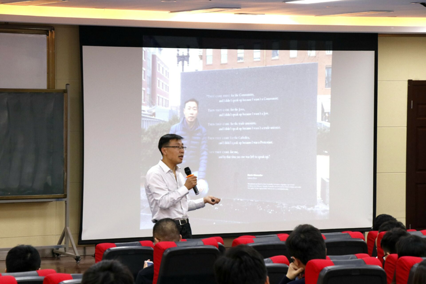为了提高同学们对英语学习的兴趣,为他们的英语学习提供动力,陈院长还与同学们分享了他在国外访学的经历。通过陈院长的分享,同学们既能感受到学习英语的氛围,也能在竞赛来临之前缓解内心的紧张心情。