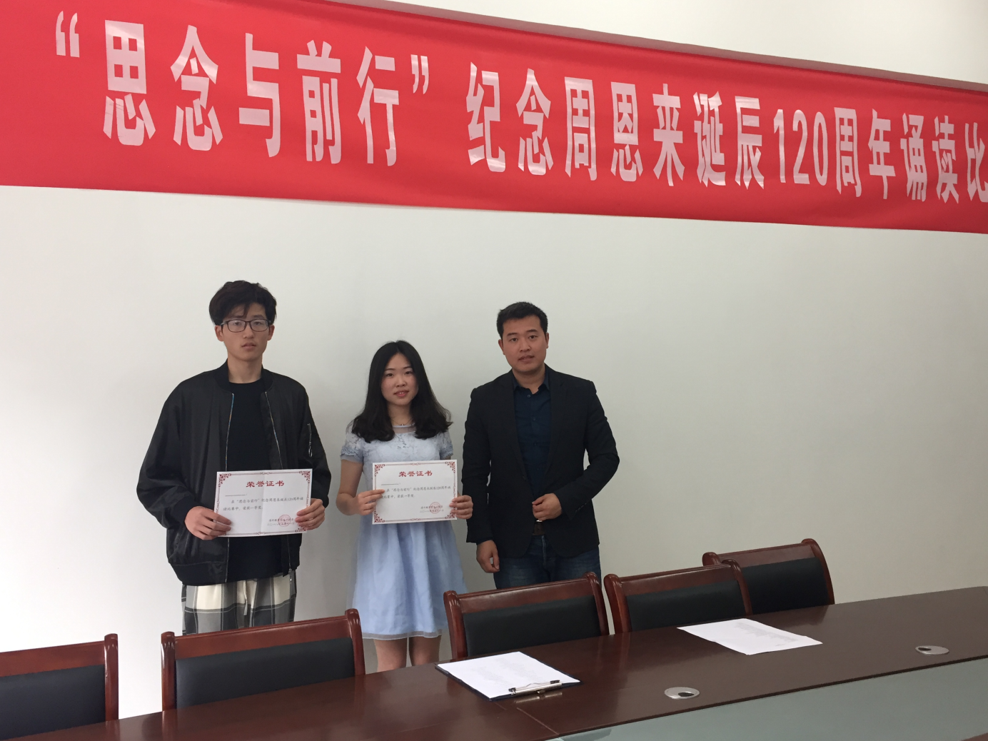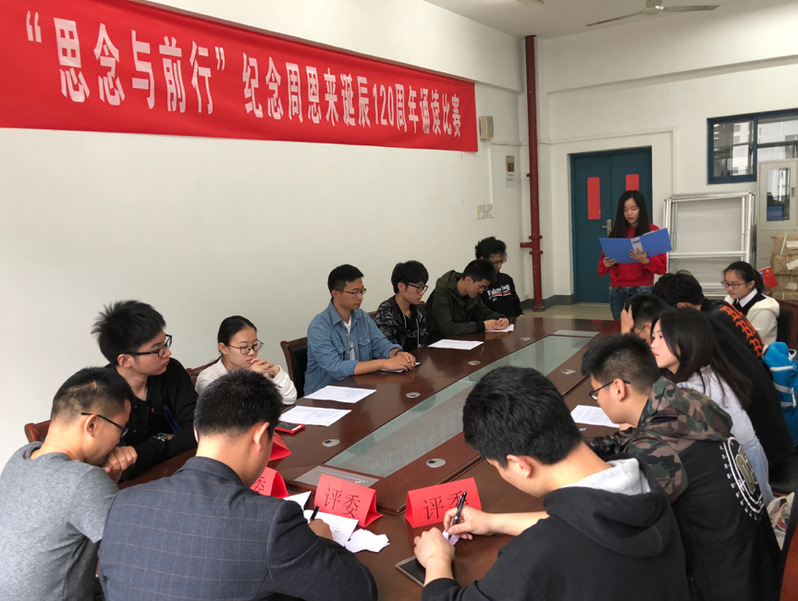 为深入学习贯彻党的十九大精神和习近平新时代中国特色社会主义思想,纪念周恩来总理诞辰120周年,让广大同学通过品读著作,学习周恩来精神,自觉践行社会主义核心价值观。5月11日,海外教育学院在教1-208会议室,开展“思念与前行”纪念周恩来诞辰120周年经典诵读比赛,学院分团委书记孙委委老师、17级辅导员钱龙老师出席了本次比赛。