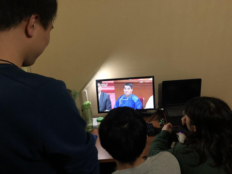 2015级赴美学生在纽约的宿舍中观看大会直播