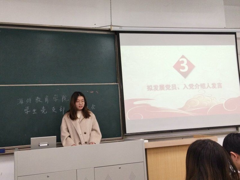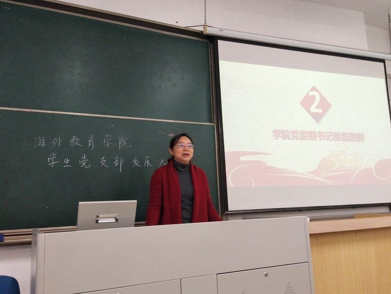 2018年11月21日中午,南京邮电大学海外教育学院学生党支部党员发展大会在教一110室举行。海外教育学院党委副书记徐磊、2015级辅导员包莉,2016级辅导员宋贞臻、2017级辅导员钱龙、组织干事赵珂、全体学生党员以及20名发展对象参加了会议。大会由学生党支部副书记吴忧主持。