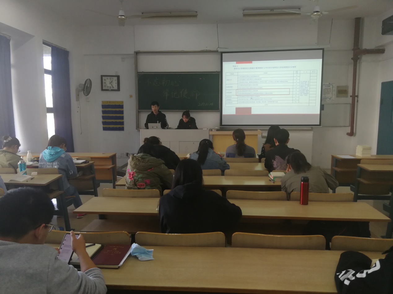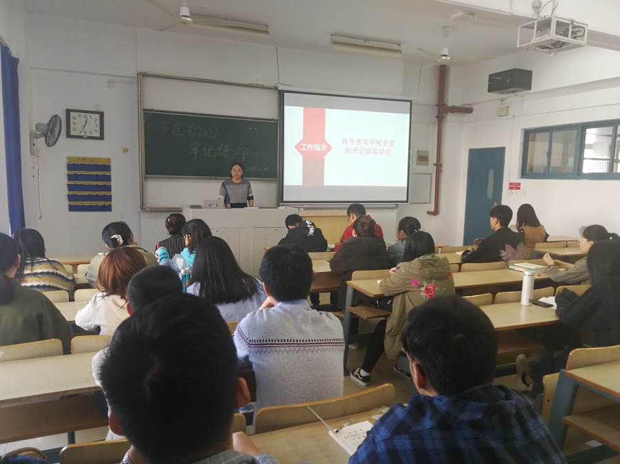 2019年10月15日中午12点半,中共南京邮电大学海外教育学院学生党支部在教1-110召开“不忘初心、牢记使命”主题教育之摘编、视频学习会,旨在组织我院所有学生党员集中学习“不忘初心、牢记使命”主题教育内容。会议由学生党支部书记包莉主持,学院党委副书记徐磊、组织干事赵珂、学生党支部副书记宋贞臻、青年委员钱龙和全体学生党员出席了会议。