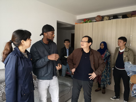 走访期间,教工党支部全体党员深入走访留学生宿舍并与留学生展开深入交谈,了解宿舍问题。并针留学生提出的公共厨房的建设,WIFI覆盖,部分房间油漆脱落等问题,进行了收集,进一步向学院汇报,推进问题的解决。
