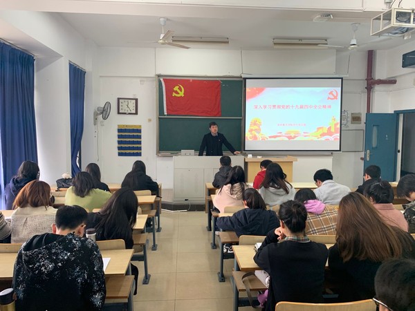 11月21日,海外教育学院学生党支部在教1—110教室召开党的十九届四中全会精神专题学习会,传达学习习近平总书记在党的十九届四中全会上的重要讲话和全会精神。海外教育学院党委副书记徐磊和全体党员出席了本次学习会议。