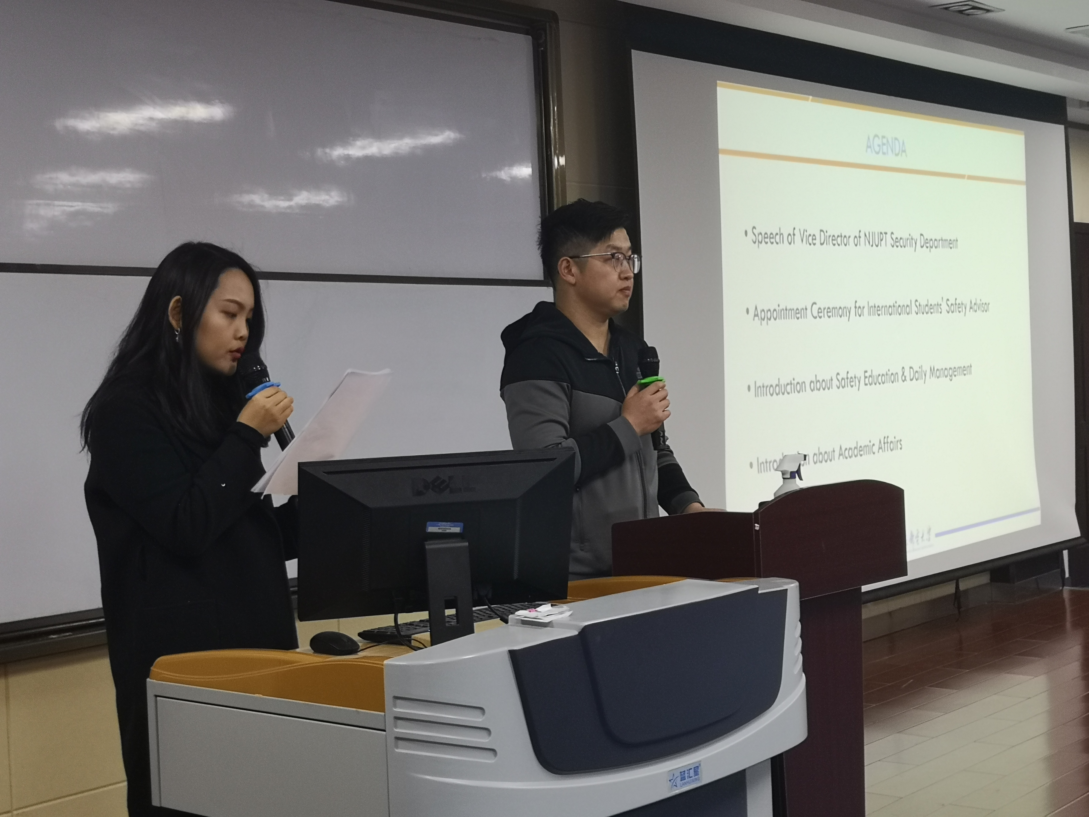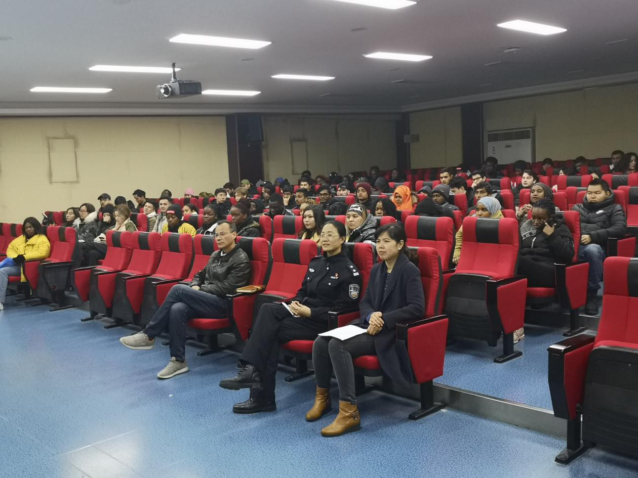 11月29日,海外教育学院组织召开了2018级和2019级留学生安全教育大会。辖区仙林派出所民警徐静警官、我校保卫处副处长谢秉宸、海外教育学院院长王保云、副院长汤美玲、留学生辅导员和教学秘书以及两百多名留学生参加了此次会议。