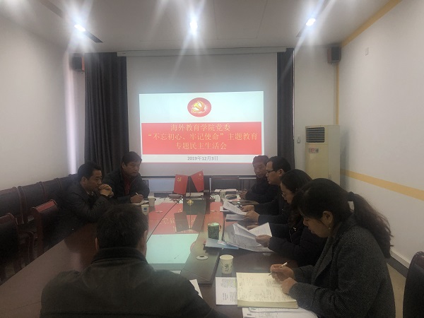 2019年12月3日,海外教育学院党委于教1-208会议室召开“不忘初心、牢记使命”主题教育专题民主生活会。会议由院党委书记方宗祥主持,学院全体领导班子成员参会,校党委常委、副校长张志华、校主题教育领导办公室第四指导组副组长倪可列席指导。