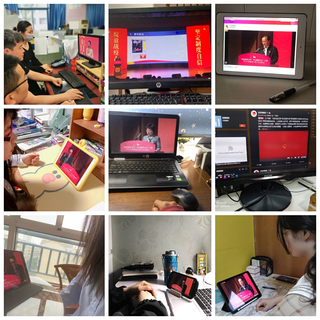 为深入学习宣传贯彻习近平总书记关于疫情防控工作的系列重要讲话精神,认真落实习近平总书记五四寄语精神,讲好中国抗疫故事,发出青年好声音,传播青春正能量,激励和引领全省广大青少年进一步坚定制度自信,在党和人民最需要的地方贡献力量,团省委于举行“绽放战疫青春·坚定制度自信”宣讲暨青年讲师团全省行活动启动仪式,海外教育学院组织学院师生共同在线观看直播。