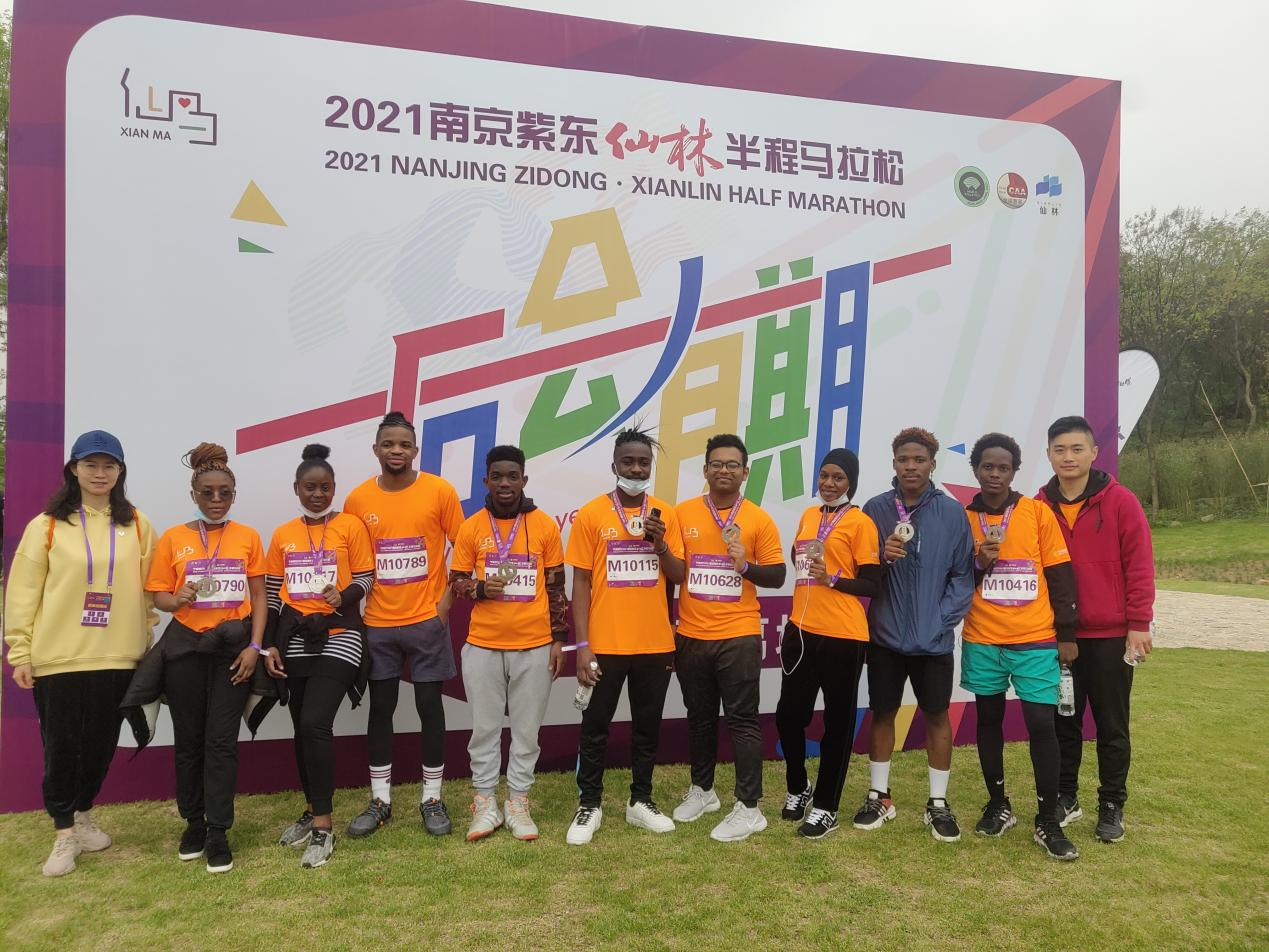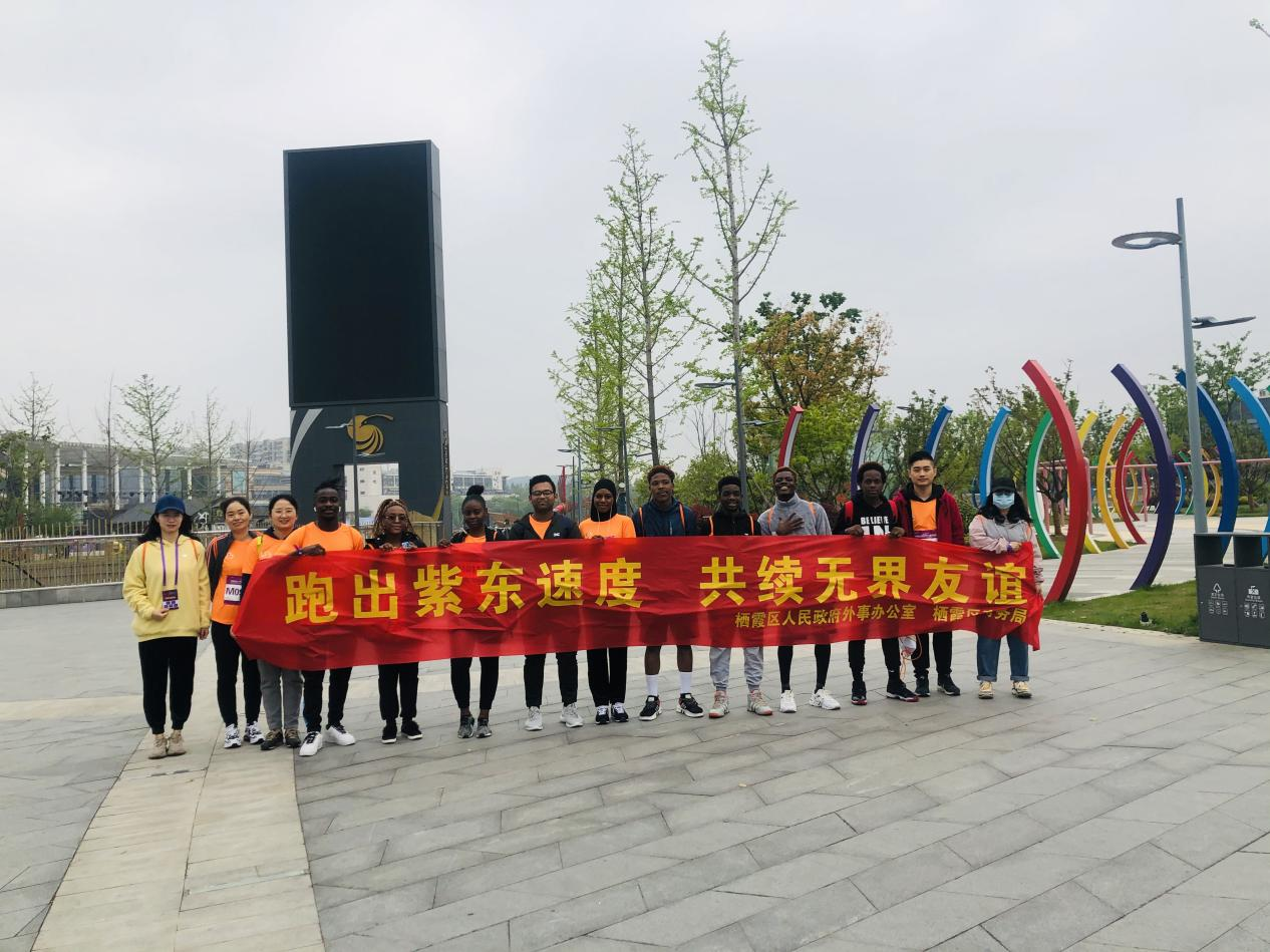 初春四月,草长莺飞。4月11日,我校留学生代表参加了2021南京紫东仙林半程马拉松比赛。随着一声鸣令枪响,留学生们与一万多名马拉松爱好者一起,在羊山公园绿树环绕的赛道上活力开跑。