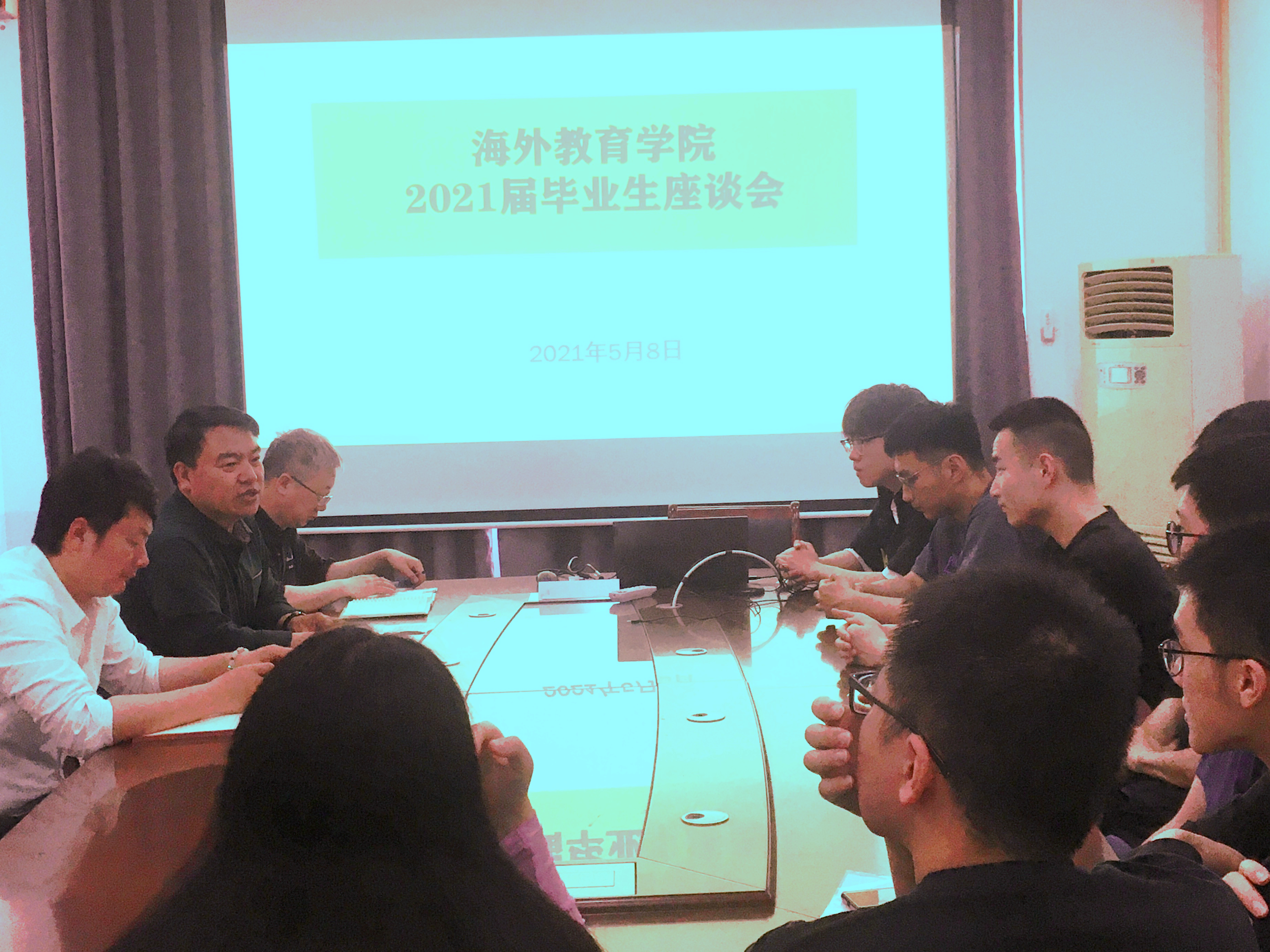 5月8日,海外学院于教一208会议室召开2021届毕业生座谈会,学院副院长章韵、教学秘书胡琦石、辅导员钱龙、毕业生代表参加本次座谈会,会议由院党委副书记兼副院长于景宝主持。