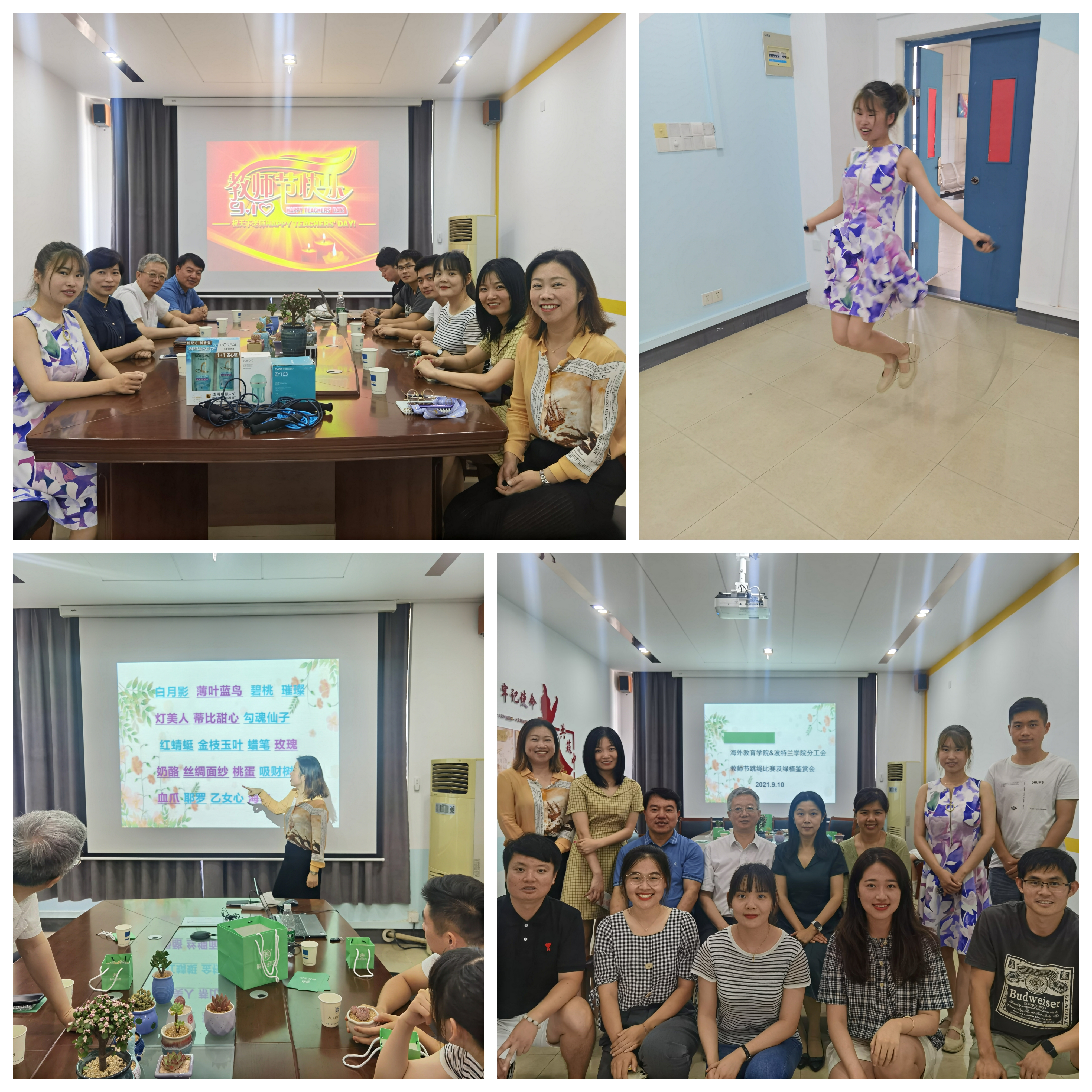 为庆祝第37个教师节,9月10日,海外教育学院、波特兰学院分工会在教一208举行了“教师跳绳比赛及绿植鉴赏会”活动。