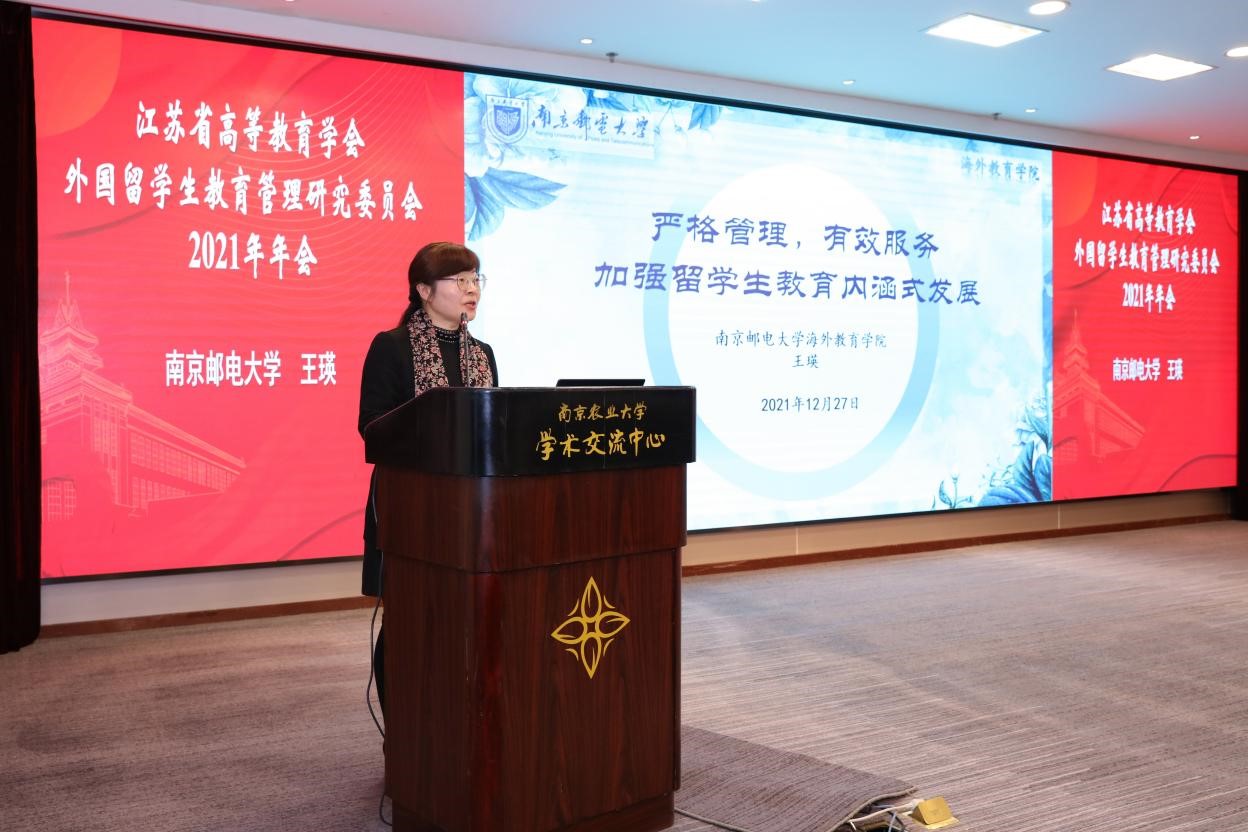 12月27日,江苏省高等教育学会外国留学生教育管理研究委员会2021年年会在南京召开,我校海外教育学院院长王瑛教授参加此次年会并在来华留学生高等教育质量认证论板块作专题报告。学院全体教工通过远程视频连线收看此次会议。
