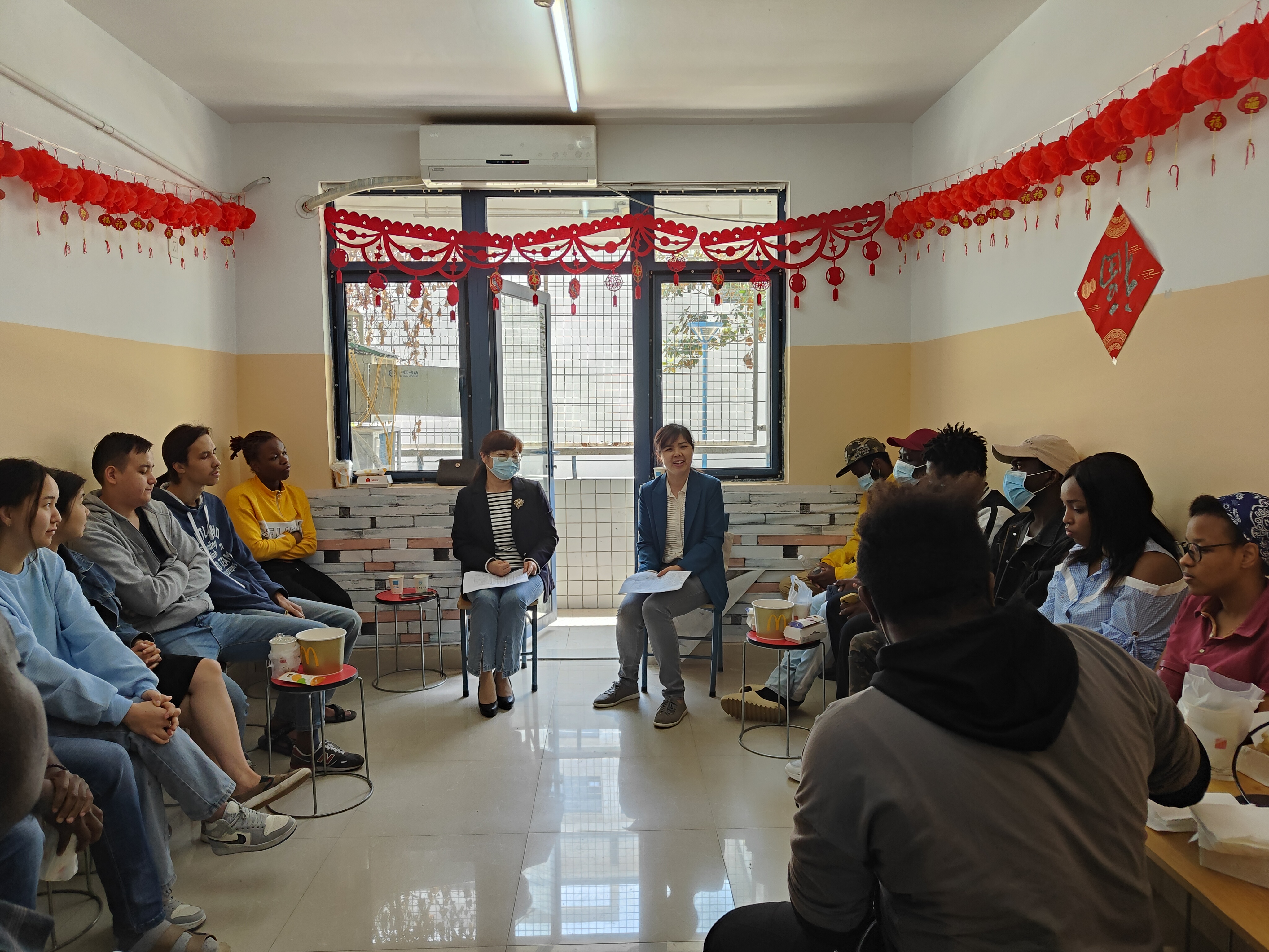 为进一步关心关爱疫情防控期间留学生的学习与生活,5月3日至5月6日,海外教育学院院长王瑛、副院长汤美玲、以及各年级辅导员共同深入留学生宿舍,与留学生代表共进午餐,倾听留学生的需求与建议。