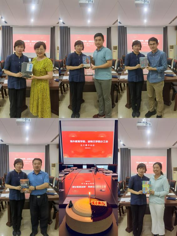 2022年6月10日,海外教育学院、波特兰学院分工会在教一208为上半年过生日的教职工举办生日赠书活动,气氛热烈活跃。