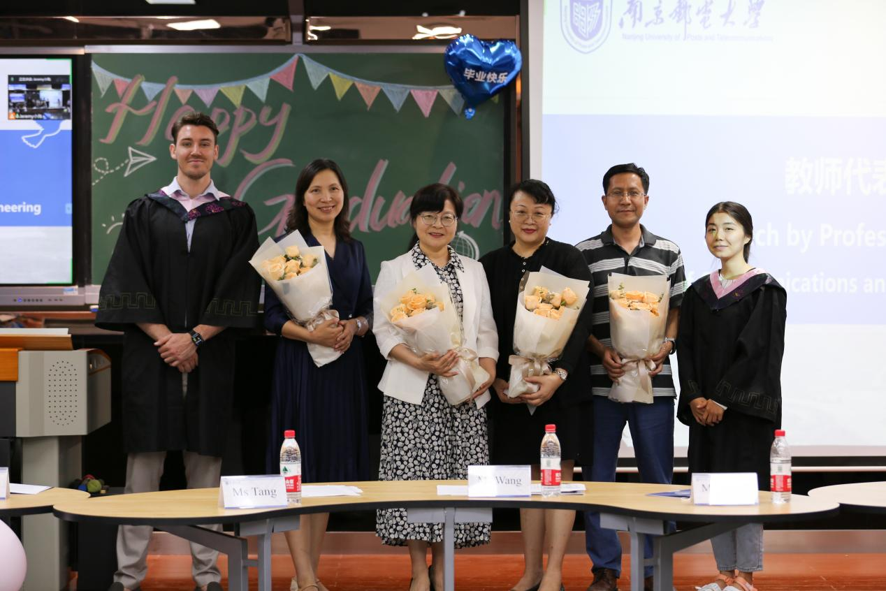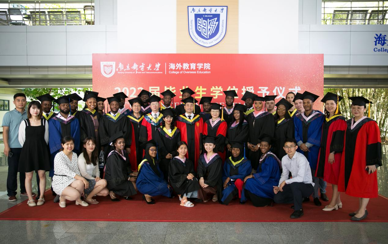 6月15日,2022届留学生毕业典礼在仙林校区教学一号楼举行。海外教育学院负责人,通信与信息工程学院,计算机学院、软件学院、网络空间与安全学院,管理学院的研究生导师代表,以及本科、硕士留学生毕业生代表共同参加了此次典礼,境外毕业生通过线上直播同步参与。