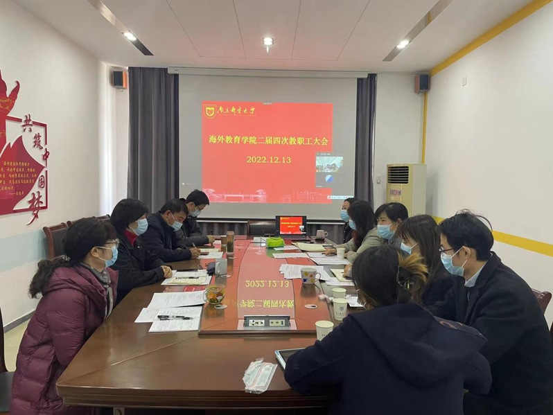 2022年12月13日上午,海外教育学院二届四次教职工大会在仙林校区教1-208会议室召开。学院全体教职工出席了此次会议,其中一名教师线上参会。