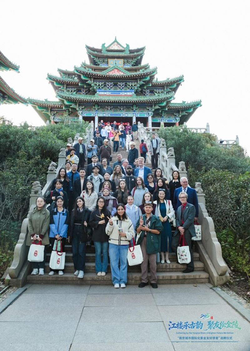 随后,使者们登临历史名楼——阅江楼。在凭栏远眺中,他们聆听六百年前的传奇故事,感受“阅江”的壮阔意境与历史厚重感;同时,也将金陵城的现代繁华与山水城林之美尽收眼底,完成了一场跨越时空的对话。