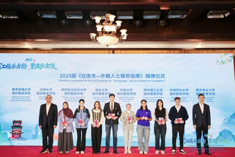 活动伊始,留学生们获赠了详尽的2025版《在南京——外籍人士服务指南》。这份实用的“城市生活宝典”将帮助他们更好地适应并融入本地生活,也为他们后续向更多国际友人介绍南京提供了权威参考。