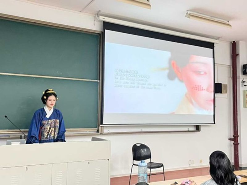 本次课程一改传统的单向讲授模式,创新地采用了“文化讲解”与“沉浸体验”相结合的方式。刘心宇老师从汉服的历史源流、服饰结构、文化象征以及礼仪内涵等方面入手,为留学生们系统梳理了汉服所承载的深厚文化底蕴。讲解过程中,刘老师引经据典、图文并茂,将一件件静态的服饰与鲜活的历史故事、哲学思想相联系,使同学们深刻感受到“衣冠上国,礼仪之邦”的文化魅力。