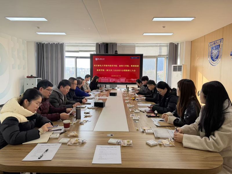 1月12日,海外教育学院、波特兰学院、欧洲塞浦路斯学院第一届第五次工会会员大会暨教职工大会在教1-301会议室召开。会议由工会主席、海外教育学院副院长汤美玲主持。