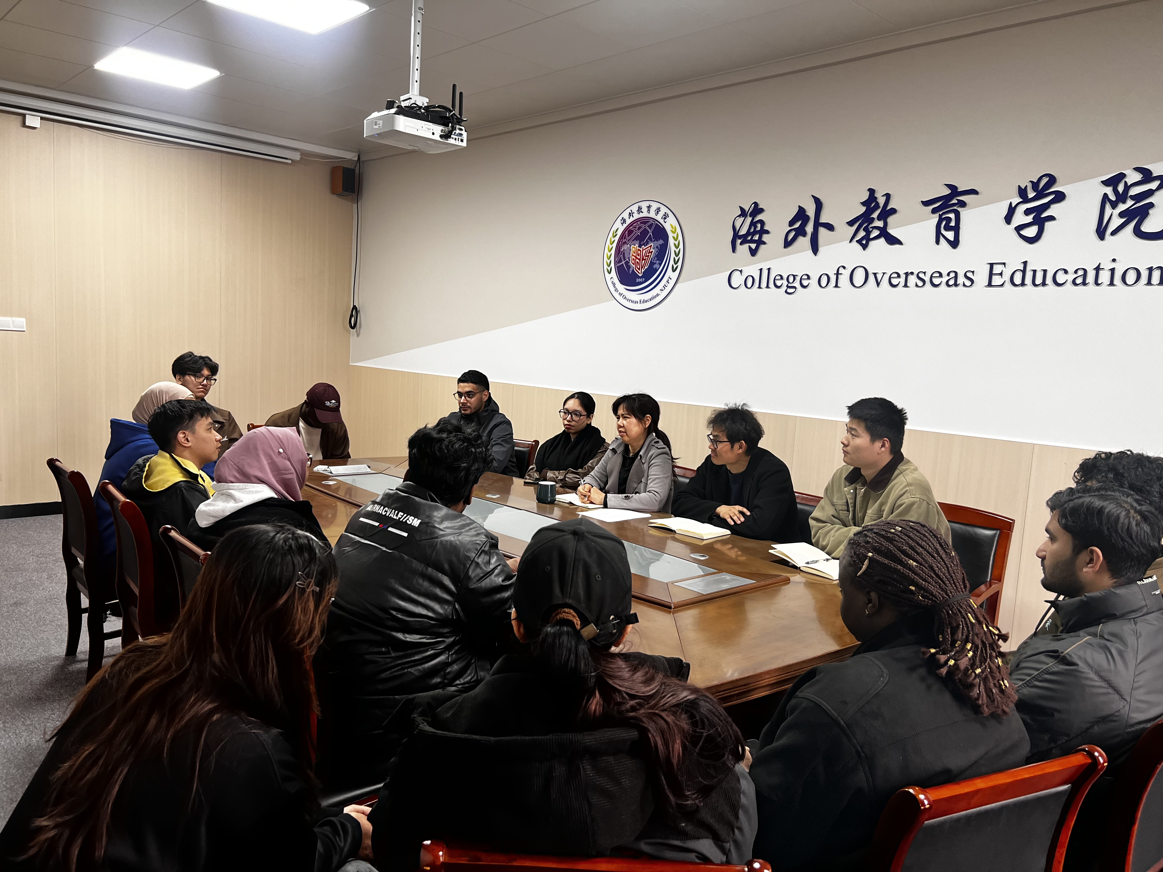 2026年3月26日,海外教育学院在教一楼404会议室组织召开了春季学期留学生安全志愿者会议。学院副院长汤美玲、辅导员吴小海、宋伟航以及近20名校内和校外安全志愿者参加了本次会议。
